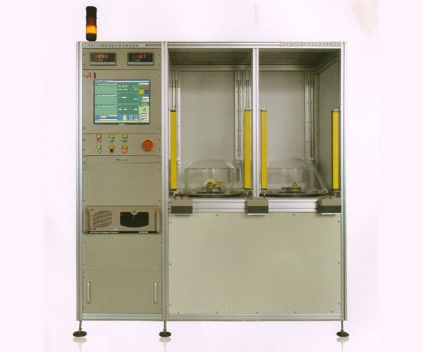 該系統(tǒng)的主要特點(diǎn)是將定子置于負(fù)壓環(huán)境中(0~-95kpa可設(shè)定)進(jìn)行綜合測試,從而使得在常壓下不易檢出的定子繞組匝間及對(duì)地不良缺陷等問題,更易于暴露在負(fù)壓下。本系統(tǒng)以工業(yè)控制計(jì)算機(jī)為中心,采用分布式微處理機(jī)分項(xiàng)測試直流電阻、旋轉(zhuǎn)方向、絕緣電阻、沖擊匝間及工頻耐壓等,并具有電弧偵測(ARC)功能,標(biāo)準(zhǔn)參數(shù)權(quán)限管理,配備真空(負(fù)壓)自控系統(tǒng)及光柵保護(hù)裝置,采用雙工位同時(shí)工作,工作節(jié)拍約每臺(tái)8s左右,具有分析、判斷、聲光報(bào)警及統(tǒng)計(jì)儲(chǔ)存功能。